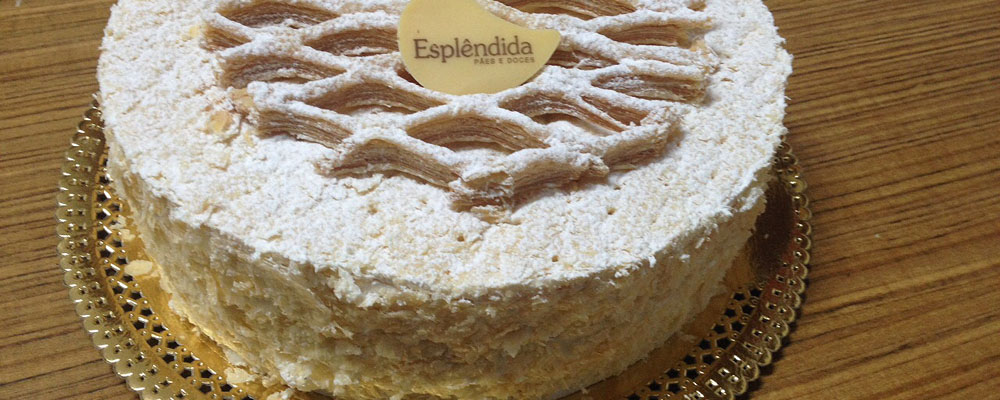 Ingredientes: massa folhada, recheada com Chantilly e creme de baunilha, cobertura de açúcar de confeiteiro.