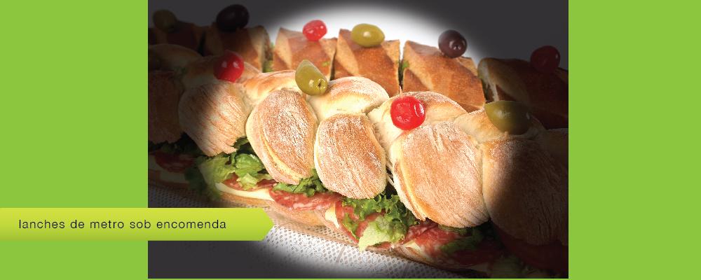 ESCOLHA O PÃO DO LANCHE DE METRO: Baguete simples, parmesão ou gergelim. OPÇÃO COM ACRÉSCIMO: ciabatta ou integral.